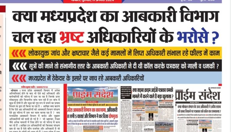 भोपाल में आबकारी विभाग में धृतराष्ट्र बनकर बैठे अधिकारियों के कारण ही देश का चौथा स्तंभ बार बार शर्मशार हुआ है ? आखिर किन अधिकारियों के कहने पर पत्रकार के साथ किया ये हादसा ? क्या इन अधिकारियों को शराब माफियाओं का संरक्षण है ? मध्यप्रदेश की राजधानी में इतनी बड़ी घटना हो जाती है और बंद कमरे में प्रेस कांफ्रेंस कर आबकारी विभाग को लगता है कि वो इस मामले से बच सकते है तो यह सोचने वाले अधिकारियों को सचेत हो जाना चाहिए की दैनिक प्राईम संदेश इस प्रकार की खबर को प्रमुखता से उठाता है पर्दा फाश करता आया है ? आपको जानकर हैरानी होगी की शहर में शराब माफियाओं के खिलाफ खबर लिखने पर धमकी मिलने लग जाती है ! क्या आबकारी विभाग अब गुंडा बन गया है ?