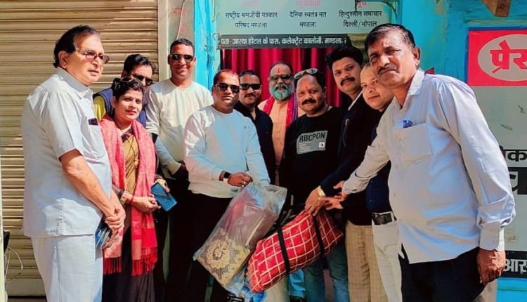 मंडला रविवार को पत्रकार परिषद जिला ईकाई मण्डला ने धार्मिक संस्था सनातन धर्मोत्सव परिवार के रंजीत कछवाहा और किशोर रजक को सामग्री भेंट की