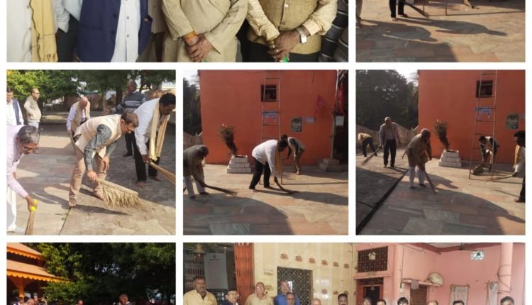 हरसिद्धि माता मंदिर परवरिया परिसर में समिति सदस्यों ने साफ