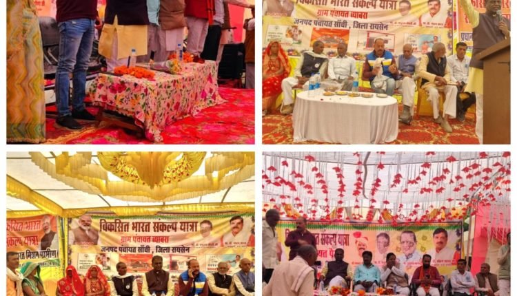 सांची जनपद के ब्यावरा तथा पैमत में आयोजित विकसित भारत संकल्प यात्रा शिविर में शामिल हुए विधायक डॉ चौधरी तथा जिला पंचायत अध्यक्ष मीणा।