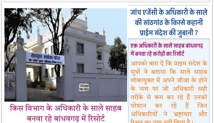 आखिर क्या कारण है कि लोकायुक्त विभाग में इस प्रकार के मामले धूल खा रहे हैं और जिन अधिकारियों को आज सलाखों के पीछे होना था वह अधिकारी फील्ड में उतरकर धड़ल्ले से भ्रष्टाचार कर रहे हैं जबकि लोकायुक्त के द्वारा जांच पूरी नहीं होने के कारण भी उनसे संबंधित विभाग कार्रवाई करने से परहेज करते हैं *जबकि प्राइम संदेश के विश्वसनीय सूत्रों की माने तो उमरिया जिले के बांधवगढ़ में एक बड़ा रिसोर्ट साले साहब के इशारे पर बन रहा है* जिस पर कोई जांच नहीं बैठ सकती क्योंकि एक अधिकारी के ही रिश्तेदार है जो करोड़ों रुपए का रिसोर्ट बांधवगढ़ में बना रहे हैं । विश्वसनीय सूत्रों से मालूम चला है कि साले साहब पर कोई हाथ नहीं रख सकता क्योंकि यह एक बड़ी जांच एजेंसी में उनके जीजा अधिकारी है । जिसके कारण साले साहब अब खुलेआम क्षेत्र में कई अधिकारी कर्मचारियों को डराते हुए अपने काम निकल रहे हैं । इधर लोकायुक्त पुलिस रिश्वत लेते रंगे हाथ पकड़ती है अधिकारियों को वहीं कुछ समय बाद छूट जाते हैं अधिकारी और ज्वाइन कर लेते हैं वही ड्यूटी ? *आपको बता दें कि प्राइम संदेश के सूत्रों ने बताया कि साले साहब लोकायुक्त में अपने जीजा के होने के नाम पर जो अधिकारी सही तरीके से कम कर रहे हैं उनको भी परेशान कर रहे हैं । जिन अधिकारियों ने भ्रष्टाचार और रिश्वत का नाम नहीं लिया है । क्या सरकार की जांच एजेंसियां लोकायुक्त आबकारी विभाग इसी तरह कार्य करते रहेंगे या नए मुख्यमंत्री मोहन यादव इस पर कुछ एक्शन लेंगे ?*