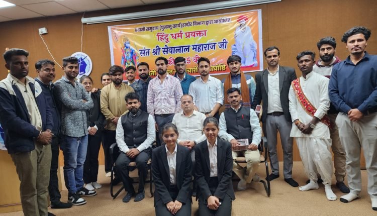 इंदौर: प्रवासी समुदाय घुमंतू कार्य इंदौर विभाग द्वारा संत श्री सेवालाल महाराज की 285वीं जयंती पर संगोष्ठी का आयोजन किया गया। कार्यक्रम में मुख्य अतिथि के रूप में हाईकोर्ट एडवोकेट हितेश शर्मा और गिरधारी राठौड़ शामिल हुए। मुख्य वक्ता राष्ट्रीय स्वयं सेवक संघ इंदौर विभाग के सह कार्यवाहक पवन तिवारी ने सेवालाल महाराज के विचारों को व्यक्त किया। उन्होंने संत सेवालाल के आदिवासियों, वनवासियों और खानाबदोश जनजातियों के लिए दिए योगदान के बारे में बताया। इस दौरान पत्रकारिता एवं जनसंचार विभाग के विद्यार्थी और शहर के नागरिक उपस्थित रहे।