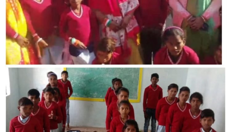 स्कूली बच्चों को स्वेटर वितरण किए गये
