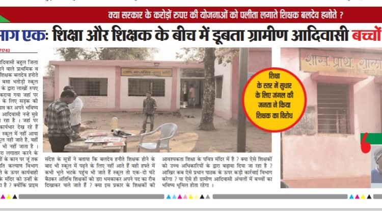 क्योंकि जंगलों में बसे शिक्षा के मंदिर को उन्हीं के शिक्षकों के द्वारा कलंकित किया जा रहा है ? क्योंकि प्राइम संदेश के सूत्रों ने बताया कि बलदेव हनौते शिक्षक होने के बाद भी स्कूल में पढ़ने के लिए नहीं आते हैं वही हफ्ते में कभी भूले भटके पहुंच भी जाते हैं स्कूल तो एक-दो घंटे बैठकर अतिथि शिक्षकों को डरा धमकाकर अपने पद का रौब दिखाकर चले जाते हैं ? क्या इस प्रकार के शिक्षकों की आवश्यकता शिक्षा के पवित्र मंदिर में है ? क्या ऐसे शिक्षकों को उच्च अधिकारियों के द्वारा बढ़ावा दिया जा रहा है ? आखिर कब ऐसे प्रधान पाठक के ऊपर कड़ी कार्रवाई विभाग करेगा ? या ऐसे ही ग्रामीण आदिवासी अंचलों में बच्चों का भविष्य धूमिल होता रहेगा ।