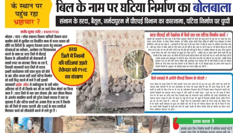 - संभाग के हरदा, बैतूल, नर्मदापुरम में पीएचई विभाग का कारनामा, घटिया निर्माण पर चुप्पी