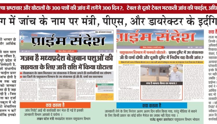 भोपाल / धार । प्रदेश में भ्रष्ट अधिकारियों की भरमार हो गई है ऐसा प्राईम संदेश नही लोकायुक्त और आर्थिक अपराध ब्यूरो के रिकार्ड बोल रहे है । जहा पर एक एक दशक से लेकर पांच से सात साल तक भ्रष्ट और रिश्वतखोर अधिकारियों की जांच लंबित है, यह तो समझ आता है की इन विभागों पर पूरे प्रदेश में घोटालेबाज अधिकारियों पर कार्यवाही की जिम्मेदारी है, परंतु पशुपालन जैसा महत्वपूर्ण विभाग जिसमें संभागीय स्तर के संचालक दोषी करार देते हुए जांच कर फाईल ऊपर भेज देते है । वही प्रदेश स्तर पर ऐसी कौन जांच होती है जिसमें महीनों और सालों लग जाते है तब तक भ्रष्ट अधिकारी दूसरा घोटाला कर देता है । आपको जानकर हैरानी होगी की प्रदेश का पशुपालन विभाग ऐसा ही है जहा पर विभाग जांच के नाम पर लीपापोती चल रही है । जिस देश में पशुओं को पूजा जाता है, गाय को माता का दर्जा दिया जाता है वेद पुराण से लेकर वर्तमान में स्कूल में भी गाय को माता कहा जाता है और वही इनको संचालित करने वाला विभाग जब अपने कर्तव्य का पालन न करें तब तो इनका भगवान भी मालिक नहीं है क्योंकि इनको इसकी चिंता ही नही है ।