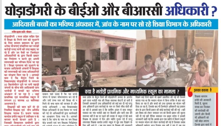 मध्य प्रदेश के बैतूल जिले की घोड़ाडोंगरी जनपद के अंतर्गत आने वाला भतोडी गांव की शिक्षा व्यवस्था बेपटरी हो चली है जिसकी जानकारी उच्च अधिकारियों को कई बार दी गई परंतु उच्च अधिकारी द्वारा कार्रवाई के नाम पर सिर्फ लीपा पोती की जा रही है आपको बता दें कि ग्रामीण अंचल में बसा रामपुर पंचायत का गांव भतोडी जहां पर बिजली और पानी तक की व्यवस्था नहीं है वह पर पढ़ने की ललक में स्कूल में बैठे बच्चे शिक्षक के इंतजार में दिन और महीने गुजार देते हैं परंतु लापरवाह शिक्षक बलदेव हनोते स्कूल में मुंह तक दिखाने के लिए नहीं आते है । जब इस प्रकार के शिक्षक की जानकारी घोड़ाडोंगरी जनपद स्तर के अधिकारियों को दी गई परंतु उन अधिकारियों के द्वारा कार्रवाई के नाम पर टाला मटौली करते हुए कई दिन निकाल दिए गए हैं । वही आपकी जानकारी के लिए बता दे कि इस जनपद क्षेत्र अंतर्गत मध्यान भोजन और ग्रामीण क्षेत्रों में शिक्षक उपस्थित नहीं रहने की कई लंबित शिकायतें पड़ी हुई है लेकिन बीइओ और बीआरसी के द्वारा कार्रवाई के नाम पर सिर्फ मुंह दिखाई की जा रही है । दैनिक प्राईम संदेश के द्वारा पिछले कई दिनों पहले भी खबरें प्रकाशित की गई थी जिसमें बताया गया था कि मध्यान भोजन में किस तरीके से बंदर बांट किया जा रहा है और बच्चों को उच्च गुणवत्ता का भोजन नहीं दिया जा रहा है, जिसके बाद भी जिम्मेदार अधिकारी चंद्र प्रकाश बोस के द्वारा किसी प्रकार की कोई कार्रवाई नहीं की गई । वही इस विषय को लेकर समाचार पत्र को किसी प्रकार की सूचना नही दी गई वही दैनिक समाचार पत्र प्राइम संदेश ने इसकी जानकारी चाही गई कि आपके द्वारा एक महीने में कितने स्कूलों पर मध्यान भोजन को लेकर कार्रवाई की गई है जिसका जवाब अधिकारी महोदय आज दिनांक तक नहीं दे पाए हैं जब इस प्रकार का लाचार रवैया एक जिम्मेदार अधिकारी के द्वारा किया जाता है तो आप समझ सकते हैं कि वहां पर स्कूल में पढ़ने वाले शिक्षक किस प्रकार से व्यवहार कर रहे होंगे । और इन में पढ़ने वाले बच्चों का भविष्य किसके हाथ में सौप दिया है जिला स्तर पर बैठें अधिकारी ने अब तो आने वाला समय ही दिखाएगा की क्या कार्यवाही की जाती है यह सरकारी सिस्टम में एक टेबल से दूसरे टेबल पर फाईल घूमते रहेगी ?