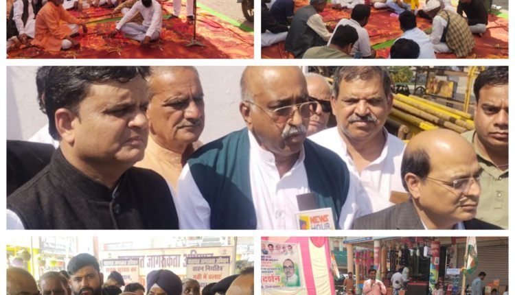 महामाया चौक में किसानों को एमएसपी के समर्थन मूल्य में उपज दिलाए जाने के समर्थन में कांग्रेस पार्टी का एक दिवसीय
