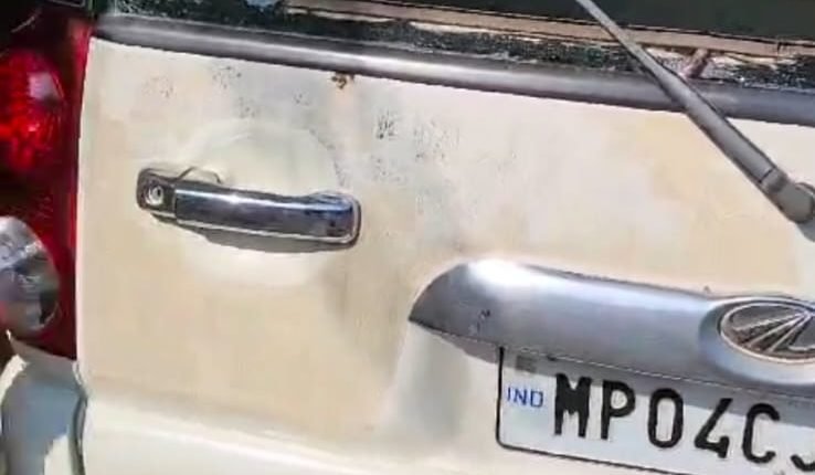 उदयपुरा में स्कॉर्पियो जीप पर चलाई गोली कांच फूटा 5 लोग बाल -बाल बचे