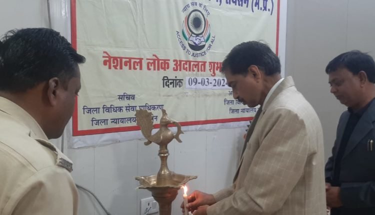 के निर्देशानुसार माननीय अनिल कुमार सोहाने प्रधान जिला न्यायाधीष महोदय/अध्यक्ष जिला विधिक सेवा प्राधिकरण रायसेन के मार्गदर्षन में एवं श्रीमती वर्षा शर्मा विशेष न्यायाधीष के सहयोग से जिला मुख्यालय रायसेन एवं समस्त तहसील न्यायालयों में वर्ष 2024 की प्रथम नेषनल लोक अदालत का आयोजन दिनांक 09.03.2024 को किया गया। जिले में राजीनामा योग्य प्रकरणों का निराकरण किये जाने हेतु न्यायाधीषों की कुल 21 खण्डपीठों का गठन किया गया।