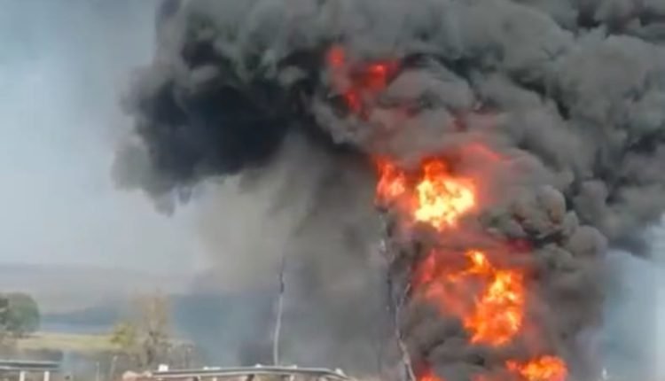 ।अज्ञात कारणों से लगी गैस या पेट्रोल के टैंकर में भीषण आग।