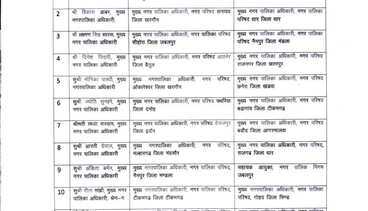 मध्यप्रदेश में नगर पालिका CMO के हुए तबादले, देखें सूची