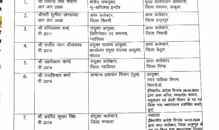 अपर कलेक्टर, मुख्य कार्यपालन अधिकारी, संयुक्त कलेक्टर के ट्रांसफर