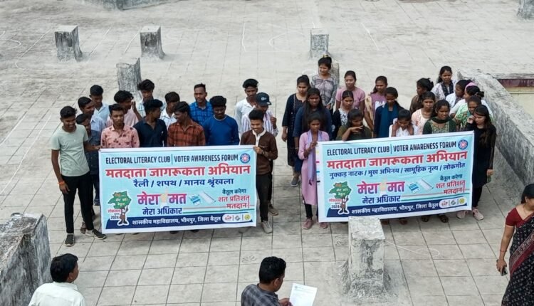 शासकीय महाविद्यालय भीमपुर में मतदाता जागरुकता शपथ कार्यक्रम का आयोजन।