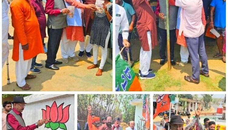 विधायक भईया लाल राजवाड़े व पूर्व भाजपा संगठन महामंत्री राम प्रताप सिंह ने किया दीवार लेखन, बूथ पर लगाया झंडा