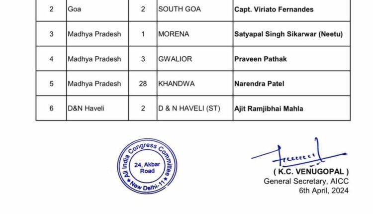 साथ ही गोवा और दादर नागर हवेली के उम्मीदवार घोषित